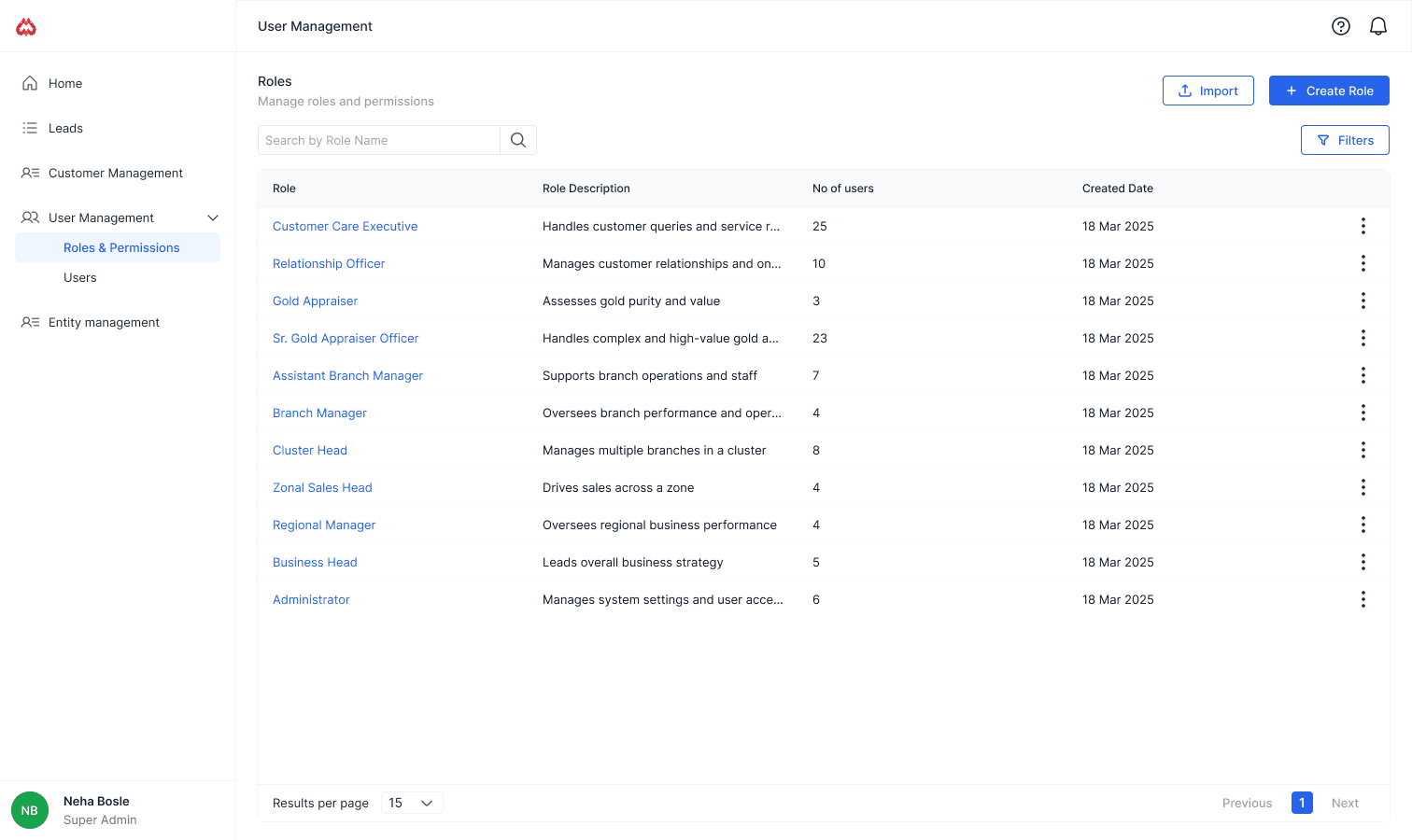 End-to-end user management feature that enables bank in managing teams & allocating work