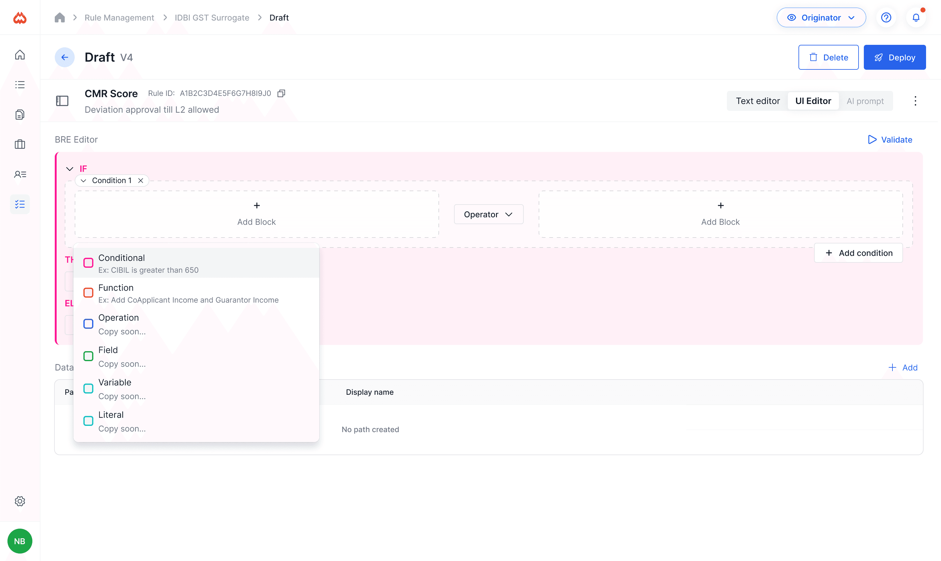 Built a Business Rule Engine, a no-code tool for banking users to manage lending policies